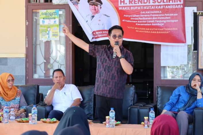RAHIMNEWS.COM – Wakil Bupati Kutai Kartanegara (Kukar) H Rendi Solihin menghadiri dua acara penting di Kecamatan Samboja, Jumat (29/12/2023). Pertama, ia menyerahkan bantuan sarana prasarana Kelompok Pengolahan dan Pemasaran Hasil Perikanan (Poklahsar) Dinas Perikanan dan Kelautan di halaman kantor Lurah Tanjung Harapan.
